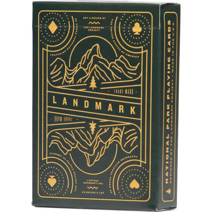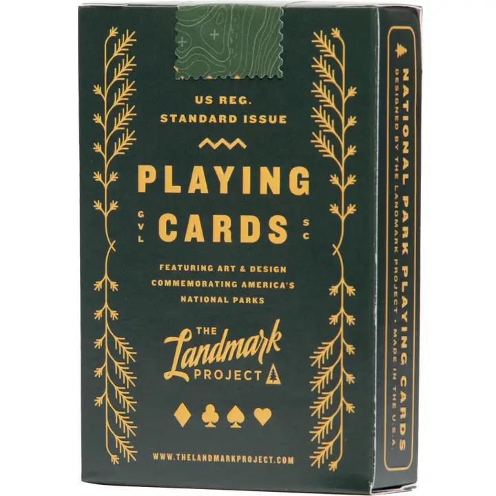 From The Landmark Project, these playing cards feature art and design commemorating America's National Parks. Packaged and sealed in a special embossed tuck box. Sustainably produced using FSC certified paper on premium card stock with an air cushion finish.