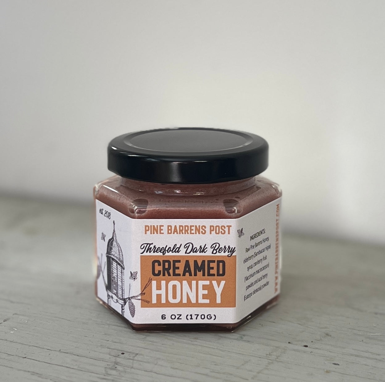 Threefold Dark Berry - Raw Pine Barrens Honey, elderberry (Sambucus nigra) syrup, cranberry fruit (Vaccinium macrocarpon) powder, and acai berry (Euterpe oleracea) powder